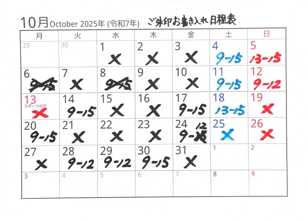 10月の御朱印スケジュール