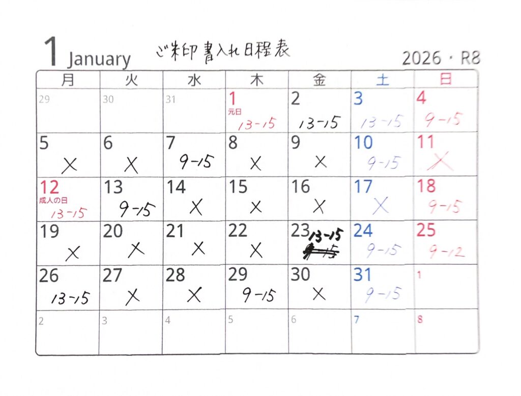 2026年1月の御朱印スケジュール