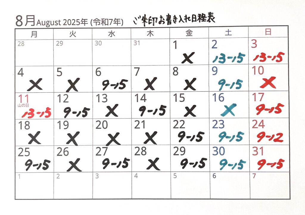 8月の御朱印スケジュール